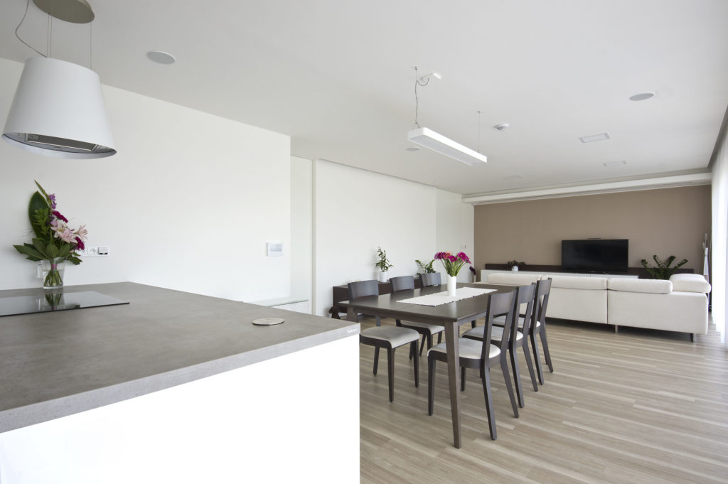 Design interiérů doplňují elektroinstalační prvky z řad solo® a Levit®. Petr Mašek, produktový specialista ze společnosti ABB, k tomu uvádí: „Na základě návrhu Pavla Jury jsou některé zásuvky a vypínače vestavěné do nábytku, aby přívodní kabely k reproduktorům, nabíječkám a dalším elektrickým zařízením nenarušovaly čisté linie.“