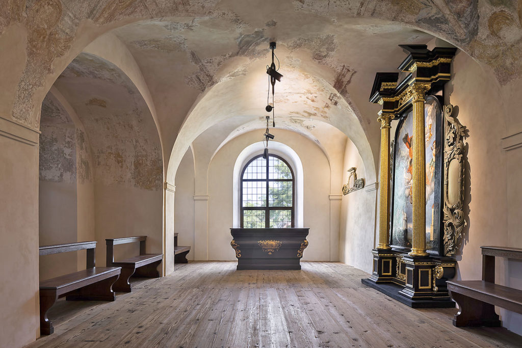 Obnovou prošla i okénka s výhledem na řeku Sázavu: „Nechali jsme do nich záměrně vsadit čirá skla, která lákají návštěvníky k zastavení a meditování v unikátní kryptě, která je pod zemí, a zároveň vysoko v korunách stromů,” vysvětluje hlavní architekt Václav Hlaváček.