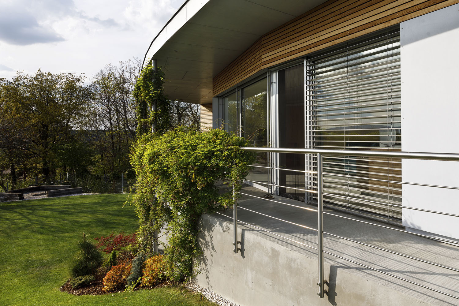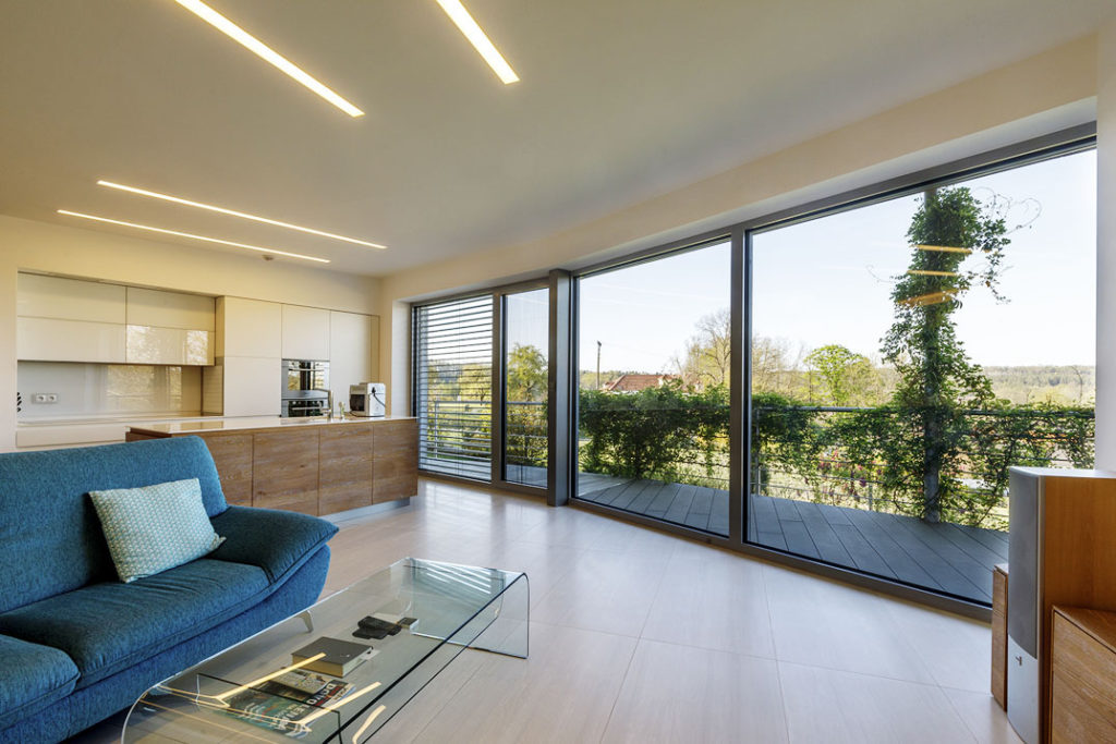 Zděná stavba v kombinaci s hliníkovými okenními systémy Schüco AWS 90. SI+ s tepelně izolačními trojskly splnila požadavek majitele na pasivní dům, ze kterého v zimě zbytečně neuniká tepelná energie a v létě naopak nepustí sluneční výheň do interiéru. To bylo úspěšně prověřeno v Blower door testu, tedy změřením vzduchotěsnosti obálky, a investoři tak získali dotaci z programu Zelená úsporám.
