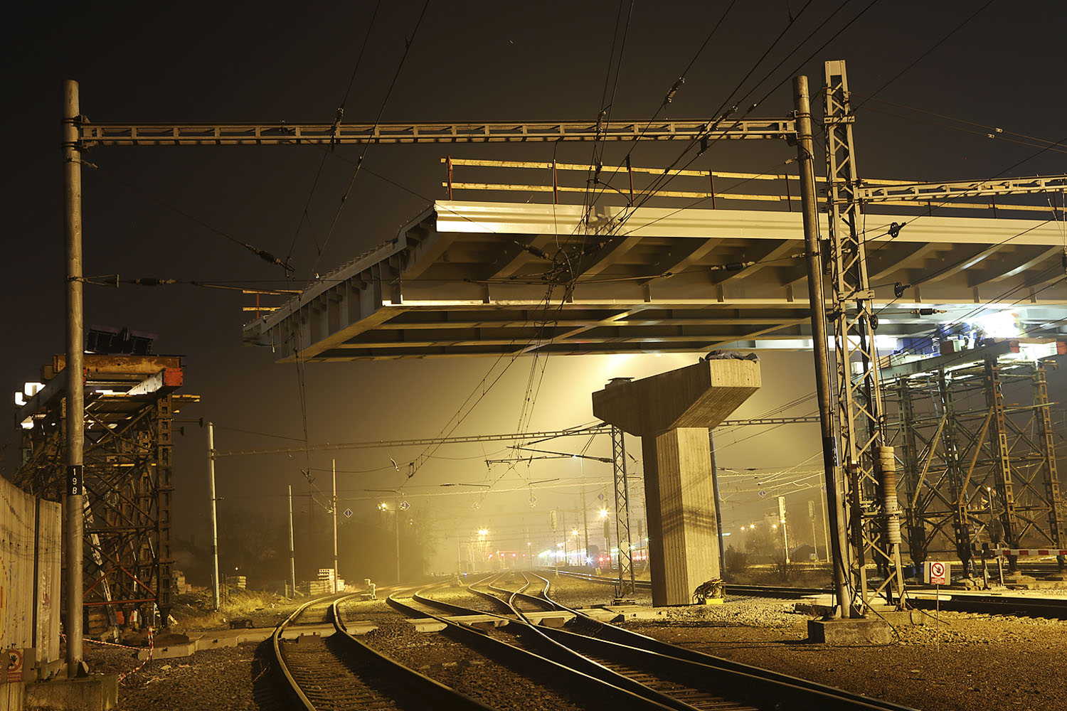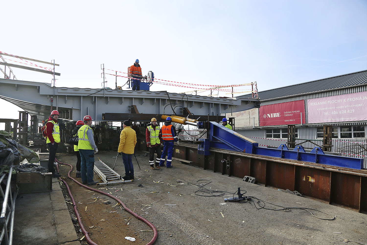 Na 90metrový výsun ocelové konstrukce byly přesně tři dny. První den probíhal výsun ve dne a za úkol bylo dostat první ložiskový příčník nad osu pilíře P6. Následující dva výsuny probíhaly v nočních směnách za plné výluky kolejí. První noční směnu musel první příčník dosáhnout osy pilíře P5 a poslední noční směnu musel být výsun dokončen na pilíři P4.
