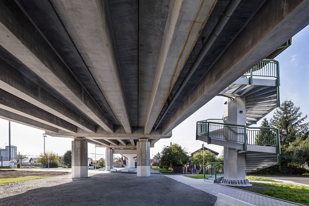 Silniční most v blízkosti nádraží v Lysé nad Labem má devět mostních polí. Jeho projekt spočíval v kombinaci tří dilatačních částí. Dvě krajní po třech polích tvoří předpjaté prefabrikované nosníky tvaru T spřažené s železobetonovou monolitickou deskou a s monolitickými příčníky. Střední, ocelová část mostu je tvořena ortotropní deskou, čtveřicí hlavních nosníků propojených podporovými a mezilehlými příčníky. Most získal letos v září titul Dopravní stavba roku 2019. Na Galavečeru v Betlémské kapli byl také v soutěži Česká dopravní stavba, Technologie, Inovace roku 2019 oceněn Ing. Richard Rakouš jako hlavní stavbyvedoucí.