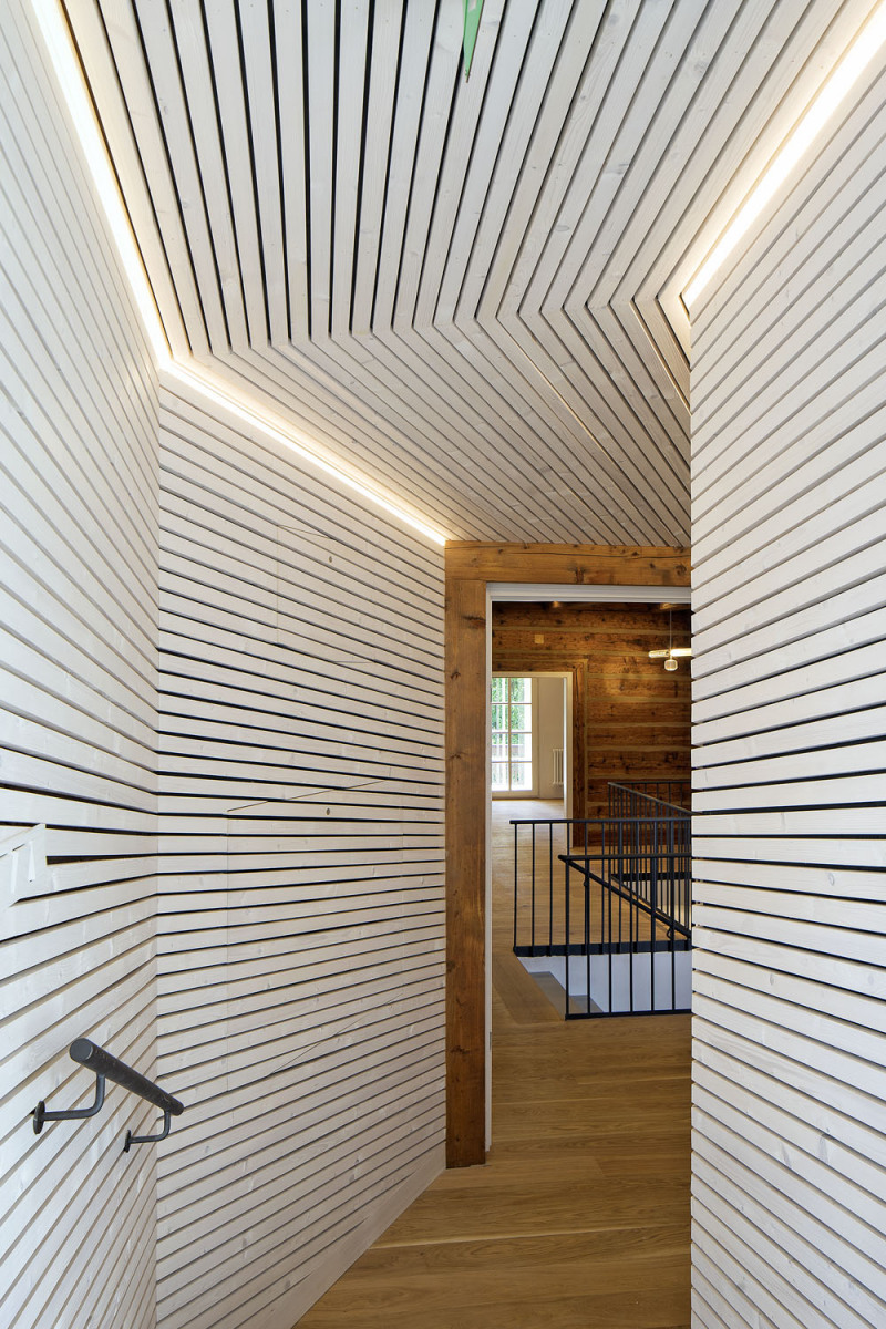 Odstraňovaly se také všechny nepůvodní stavební prvky včetně vnějšího zateplení, které nahradila vnější hliněná omítka. Do střešního souvrství byla instalována nadkrokevní izolace, takže vznikl víceúčelový podkrovní prostor. V podlaze na terénu jsou použity provětrávané izolační tvarovky, podlahy v patře mají suché skladby s násypy, které zlepšují akustické vlastnosti konstrukcí a zároveň umožňují snadné vedení sítí.