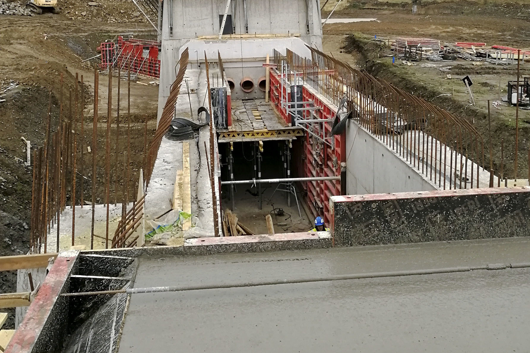 Masivní konstrukce vyžadovala speciální typ betonové směsi s pomalým vývinem hydratačního tepla a nízkým smrštěním, proto byla nutná neustálá spolupráce betonárny s ostravskou laboratoří BETOTECH. Na stavbu se vozily převážně 2 druhy betonu, C 25/30, XC2, S4, Dmax. 22 mm pro podkladní vrstvy a beton C 30/37, XF3, S4, Dmax. 22 mm jako konstrukční. Jednalo se o beton se zaručenými vlastnostmi pro vodonepropustné konstrukce PERMACRETE®.