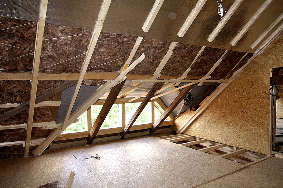 Izolace roubených konstrukcí se prováděla tak, aby byla v maximální možné míře zachována jejich plasticita a rovinná nesourodost. Roubené konstrukce oddělující pokoje jsou opatřeny zvukově izolační minerální vatou ve dvou vrstvách, s vrchní vrstvou hliněné omítky opatřenou bílou vápennou maltou.