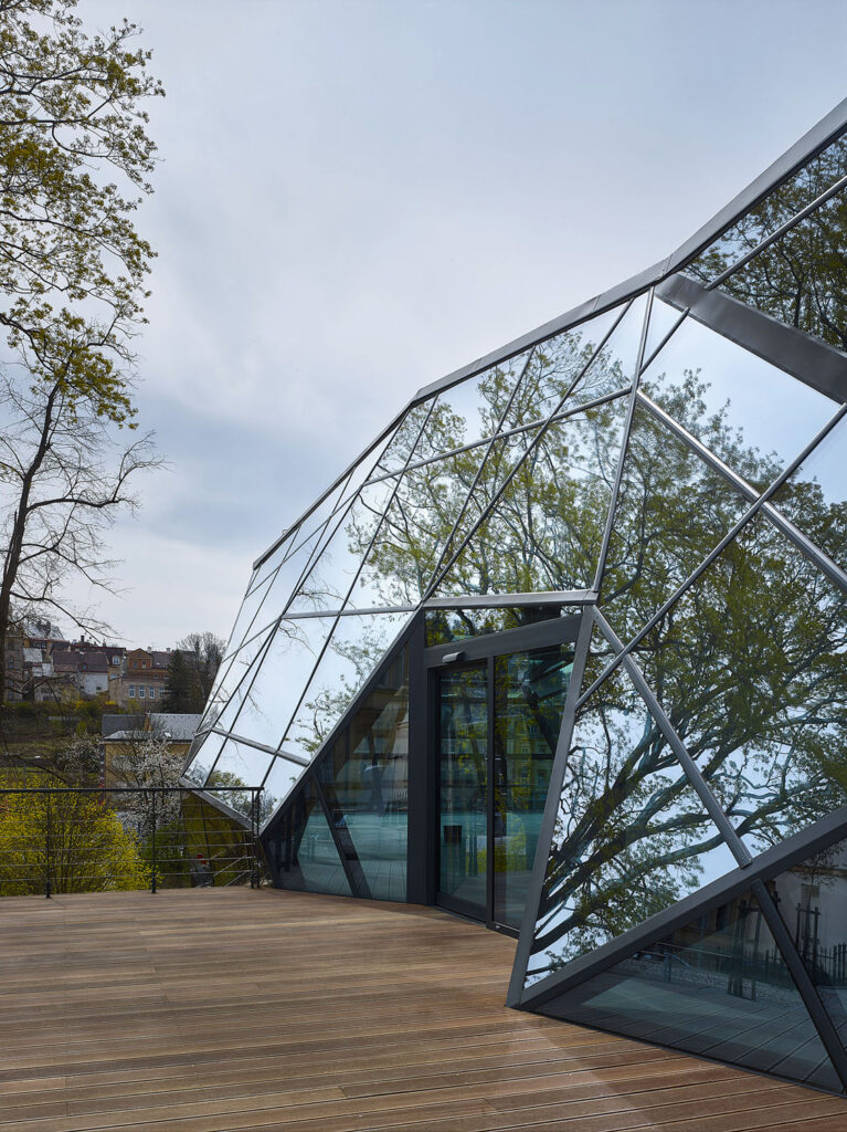 Zanedlouho, kolem roku 2014, se opět ukázala nezbytnost rozšířit prostorové kapacity muzea. Již od samého počátku se jednalo o architektonicky velmi složitý problém, kdy bylo nutno řešit základní otázku: Jak přistavět novou část k památkově chráněnému ucelenému objektu? Nakonec vítězný tým architektonické soutěže, vedený profesorem Hlaváčkem, zvolil variantu přiznání kontrastu mezi starou a novou částí stavby. Po akceptování omezujících doporučení Národního památkového ústavu i samotného muzea se začal pozvolna prosazovat návrh přístavby ve tvaru hranolu, směřujícího do parku a navozujícího asociaci s broušenými krystaly, používanými jako základní materiál při výrobě bižuterie.