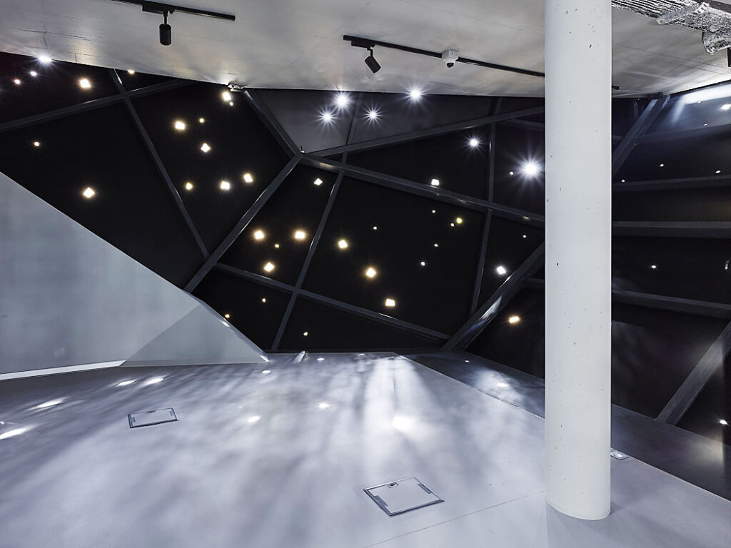 K technickým zajímavostem patří i konstrukce vnitřního centrálního schodiště bez podstupnic. Jednotlivé stupnice, kotvené do schodišťových stěn prostřednictvím systémových bodových terčů, jsou z bezpečnostního skla s mléčnou fólií – celková tloušťka pětivrstvé stupnice je 41 milimetrů.