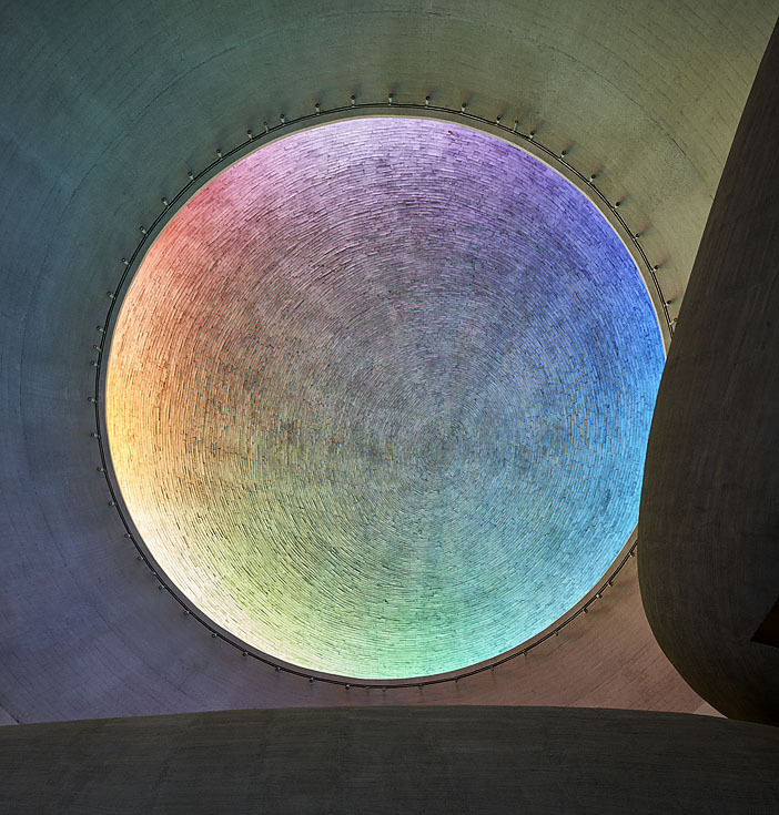 „Opat Suger považoval světlo pronikající a formující hmotu za bezprostřední projev světla světel, tedy Boha. Souhlasím s ním i po skoro tisíci letech. Na Lesné je světlo odražené, difuzní a barevné, venkovní prostředí je neviditelné – kruhové okno o délce 80 metrů se nachází až pod kopulí. Kruhová je i asymetrická klenba s otiskem dřeva. Vypadá jako otisk Božího prstu. Kdo chce, může zažít pod touto klenbou Boží dotek.“